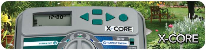 The new Hunter X-Core presents handy water management control in a compact, user-friendly controller that is capable of meeting the irrigation requirements for a wide range of residential landscapes. Simply put, the XC brings a whole lot extra to a small controller. Like extra power…the X-Core offers a choice of 4-, 6-, and 8-station models, each with plenty of might to operate one or two valves per station plus a pump start relay or master valve. Extra features…including global seasonal adjustment and a 365-day calendar to make water savings easier, plus a default system that permits retrieval of the original program entered into the controller. Extra flexibility…with three programs (each with four start times), multiple scheduling formats, and the ability to select sensor input by station. And extra memory…with a non-volatile on-board program backup and a high-energy lithium battery for timekeeping to assure you’ll never have to reprogram the controller due to power outages. The choice for those who demand outstanding reliability, the XC is where to turn for extra peace of mind.